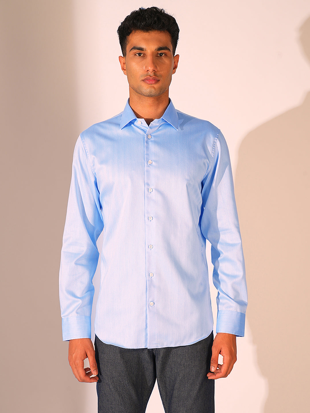 Elevate your formal wardrobe with this timeless slim-fit dress shirt. Designed with a classic shirt collar, long sleeves, and buttoned cuffs, it offers a refined silhouette for any occasion. The easy-to-iron finish ensures effortless sophistication, keeping you polished with minimal effort. Complete with a curved hem and button fastening, it’s a staple in modern elegance.