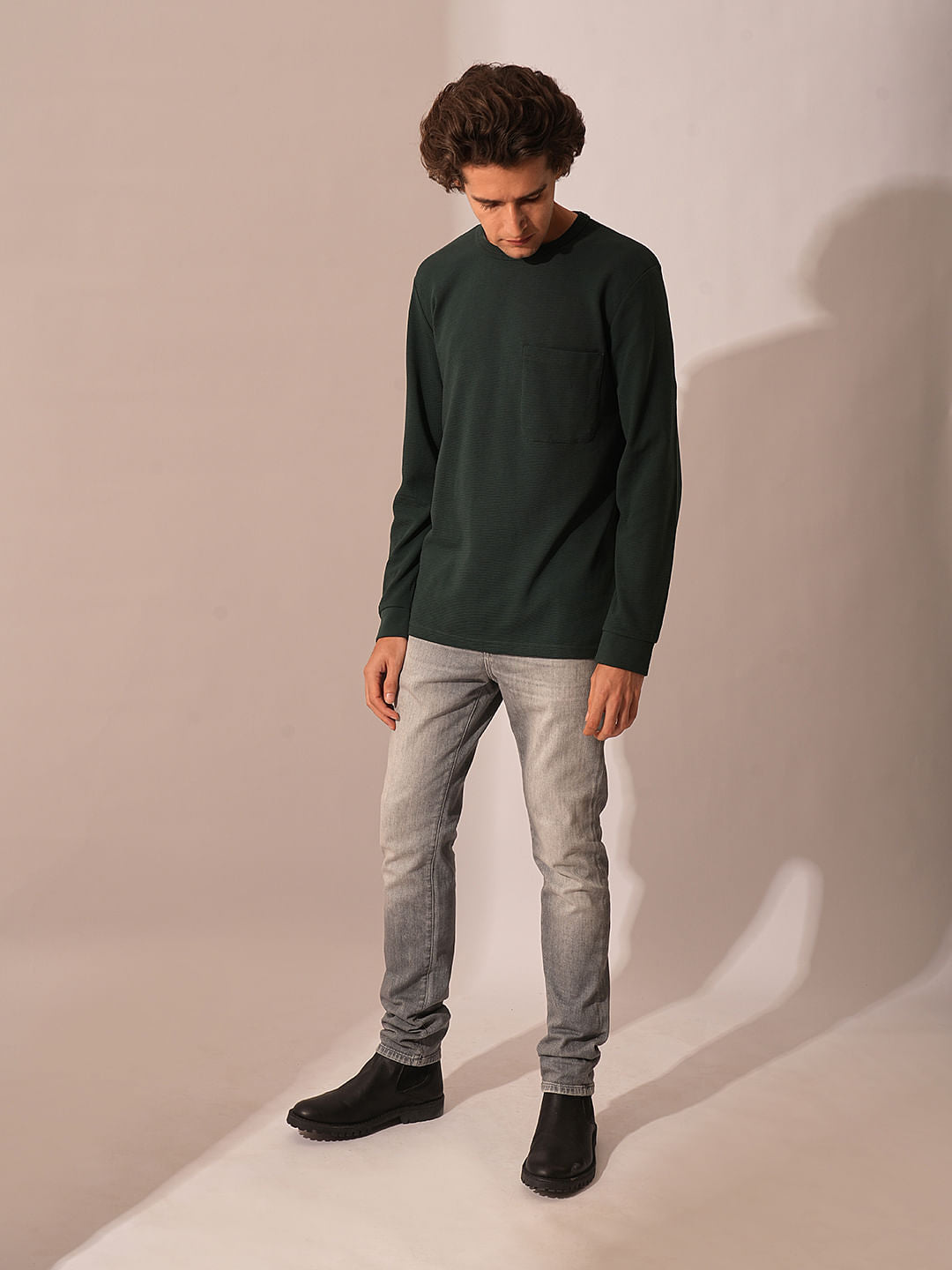 This long-sleeve t-shirt offers a timeless and comfortable choice for your everyday wardrobe. Designed with a classic O-neck and a regular fit, it provides effortless style and ease of movement. The chest pocket adds a subtle detail, making it a versatile piece for any occasion. Perfect for layering or wearing on its own, this t-shirt is a premium addition to your collection.