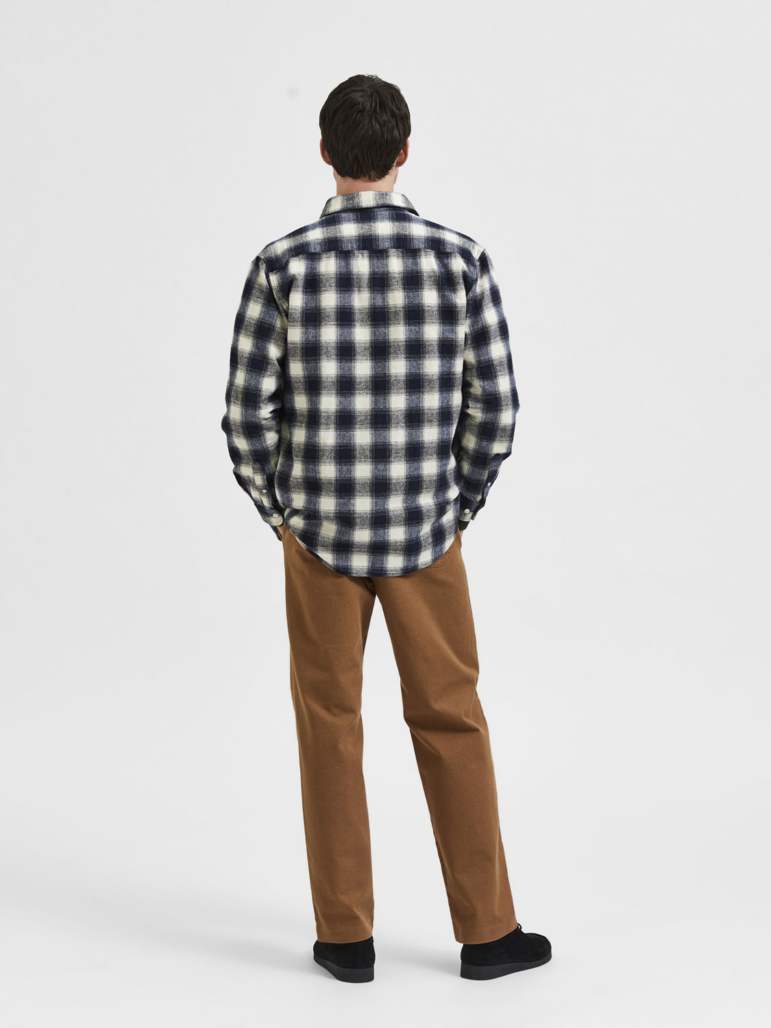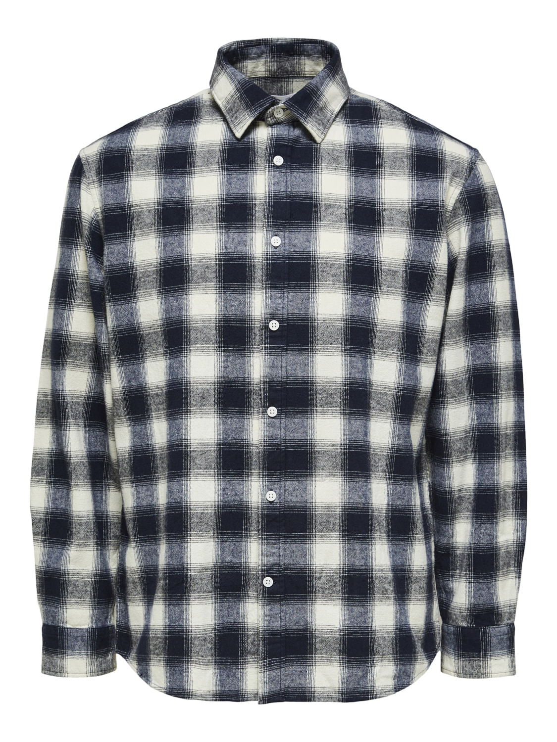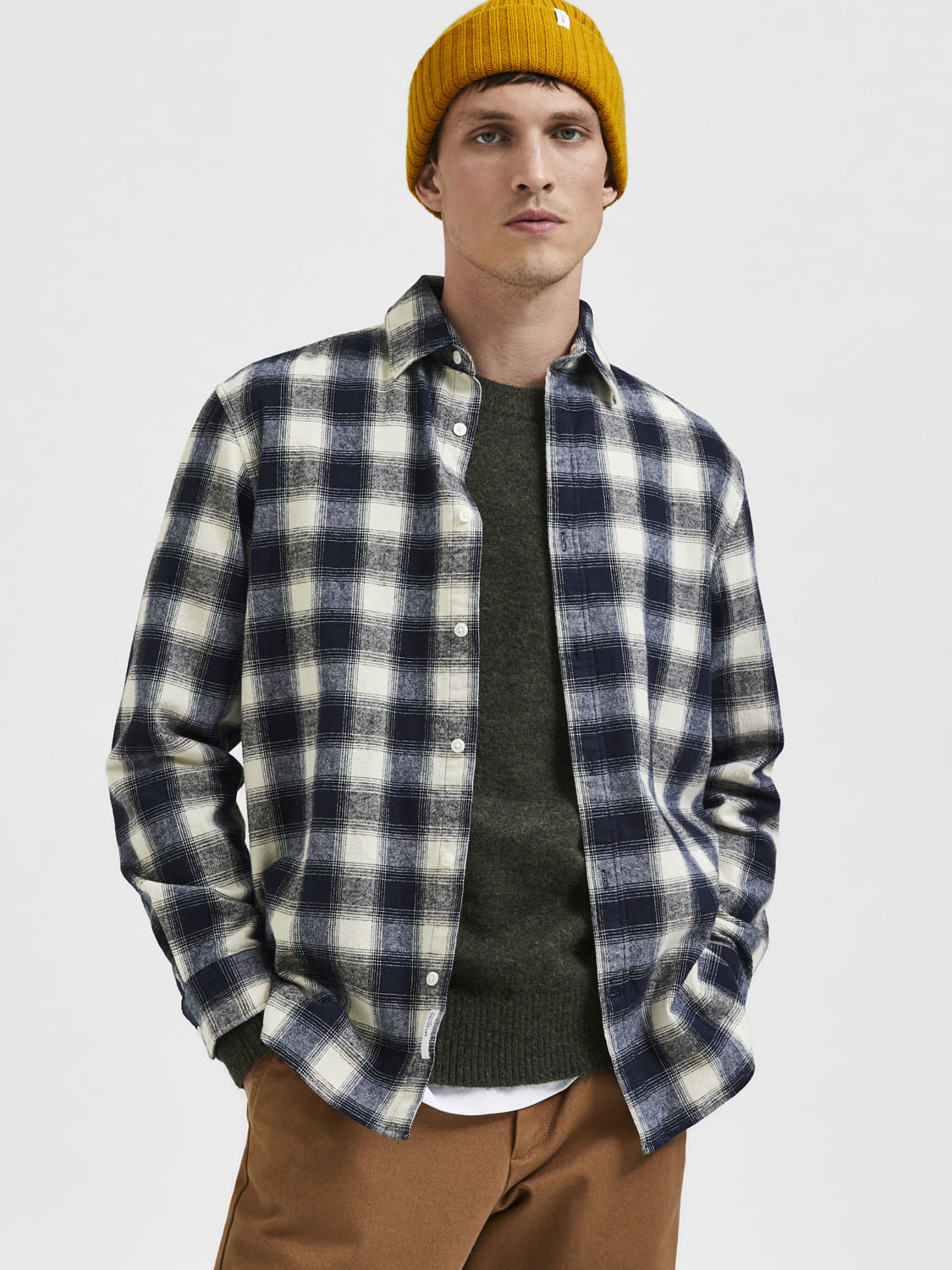 Made from organic cotton, this dark blue check shirt in full sleeves from SELECTED Homme is a perfect pick for any 9 to 5 look or a semi-formal attire. Designed in a check print and full sleeves, this shirt is tailored to perfection and cut in a regular fit. Pair it with brown chinos or formal trousers for a suave look.