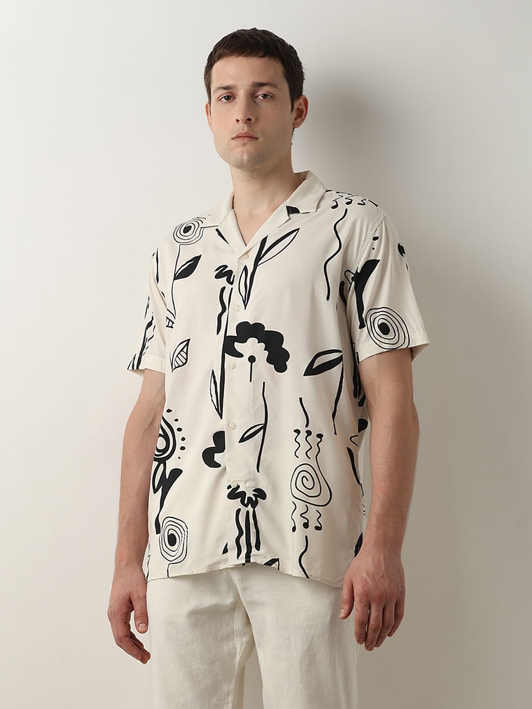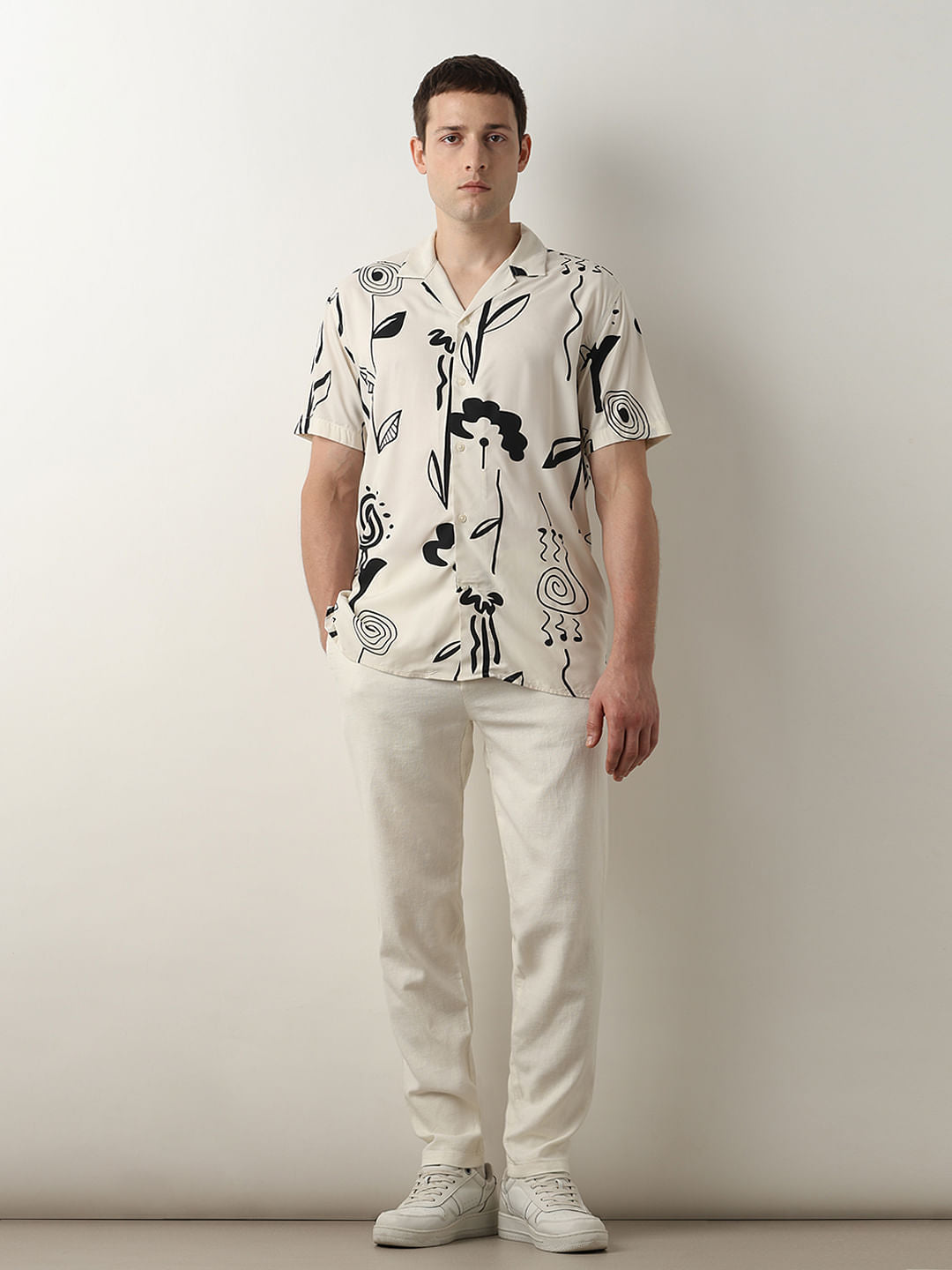 Men's short sleeves shirt in an all over print. Offers a regular fit, and is designed with a front button closure, Cuban collar, and is made from premium quality fabric.