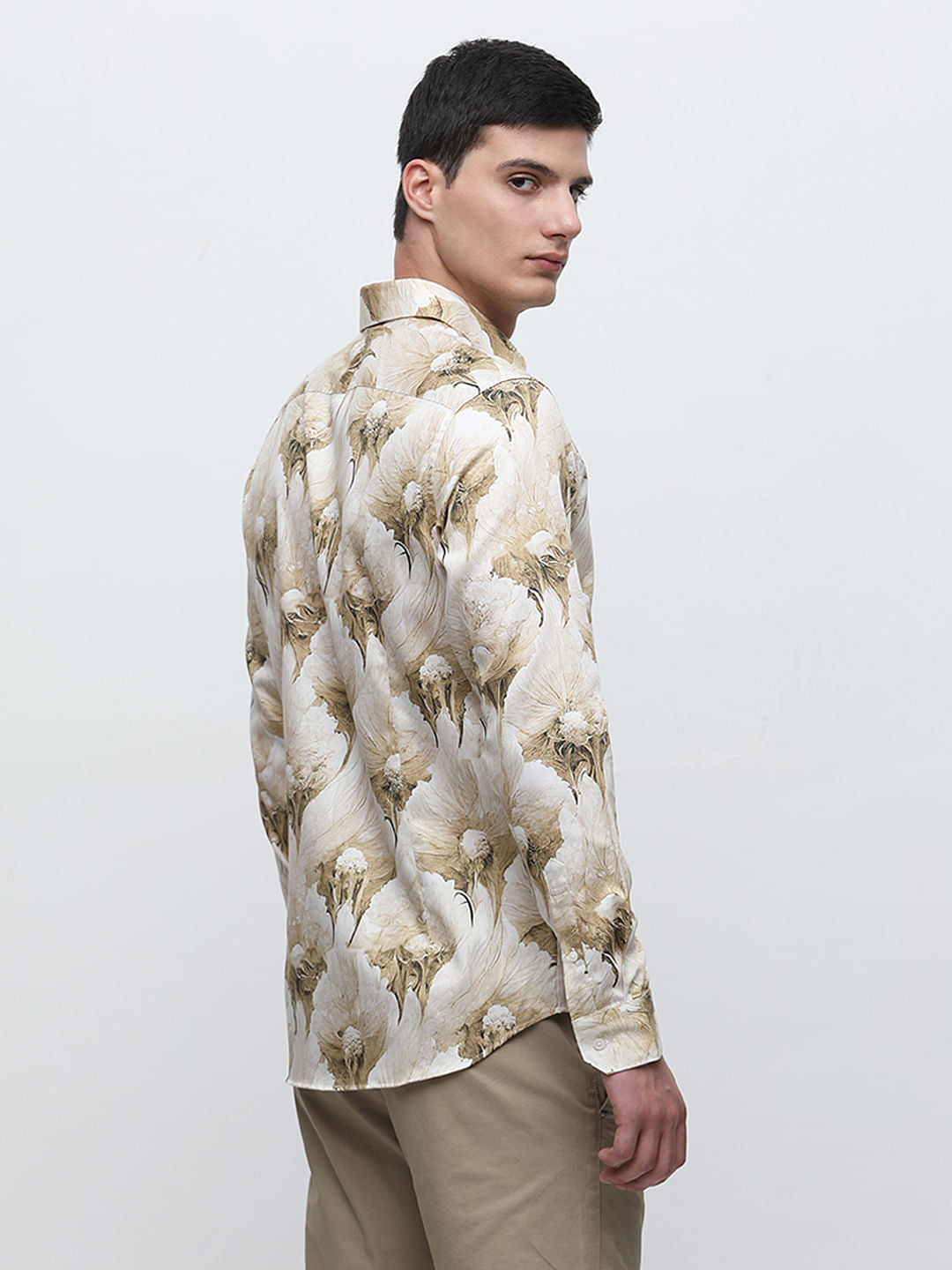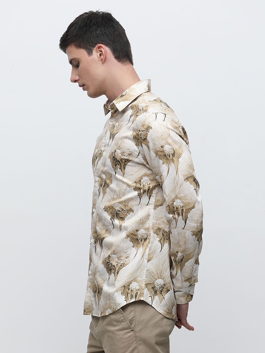 Beige Floral Print Cotton Shirt