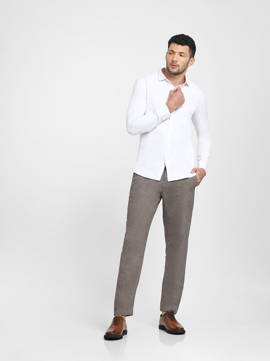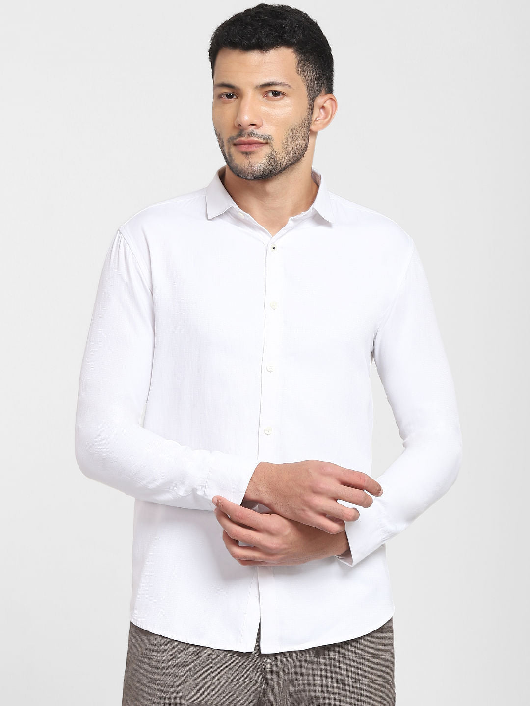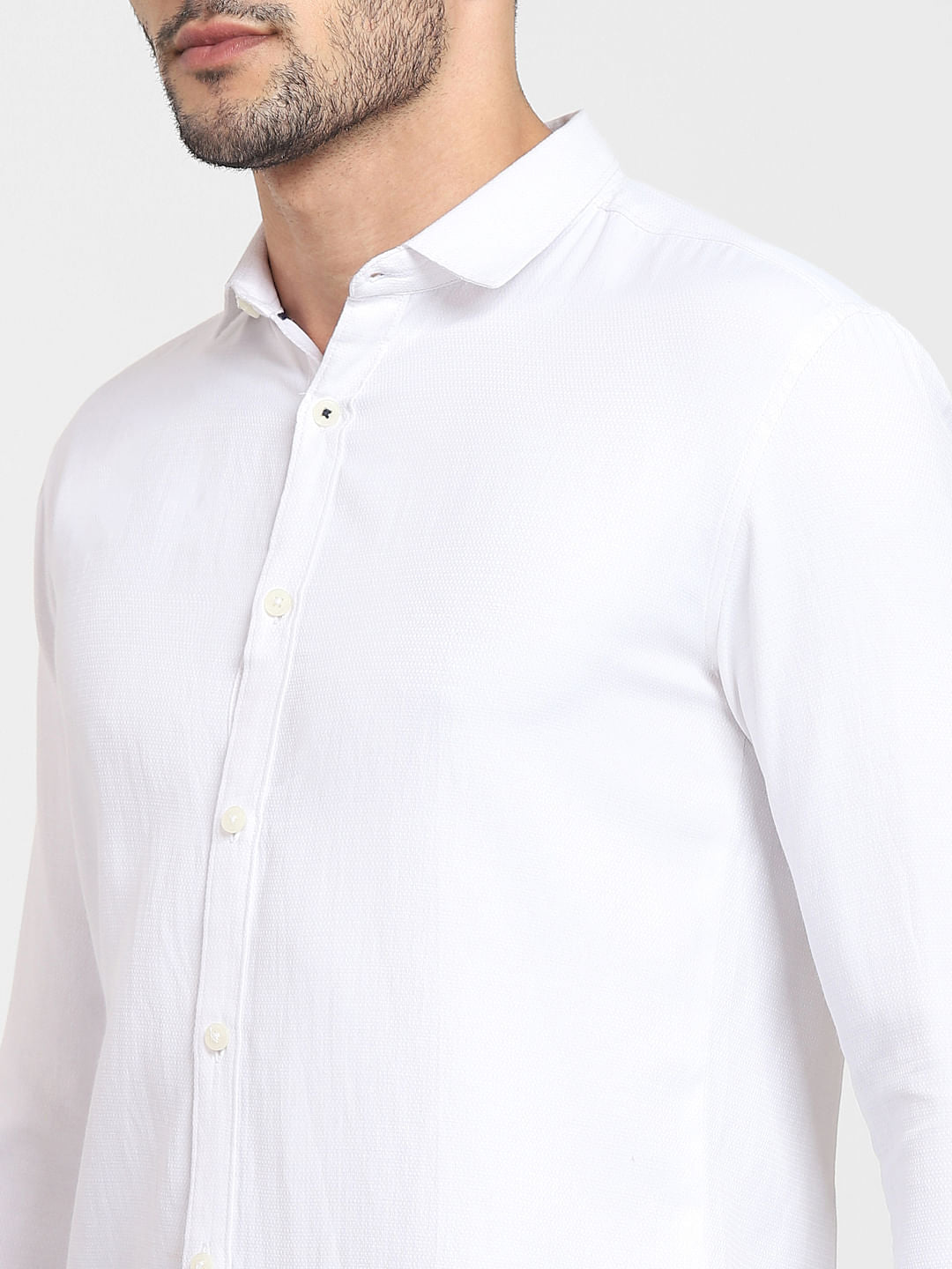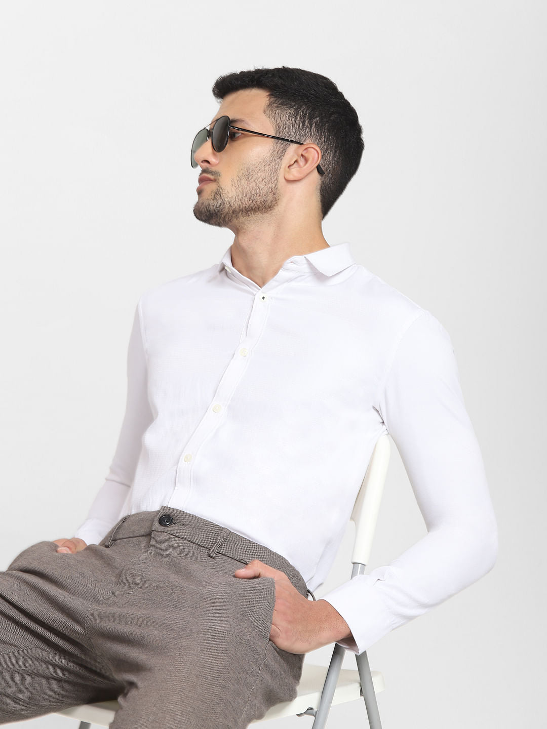 Men's full sleeves formal shirt. Made from premium cotton blend fabric and designed with classic front button placket and a shirt collar. Perfect for layering under blazers and wearing with formal trousers for a 9 to 5.