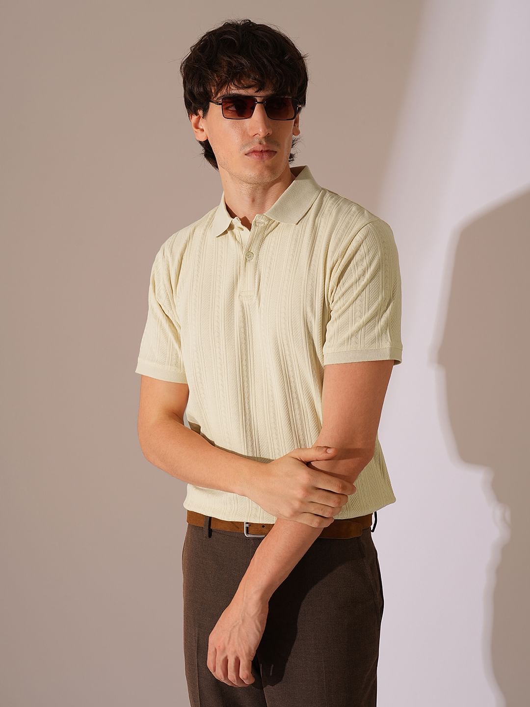 Elevate your wardrobe with our Men's Knitted Short Sleeve Polo. Crafted with a refined pointelle structure, this polo showcases a sophisticated jacquard quality with a regular fit that effortlessly combines comfort and elegance.