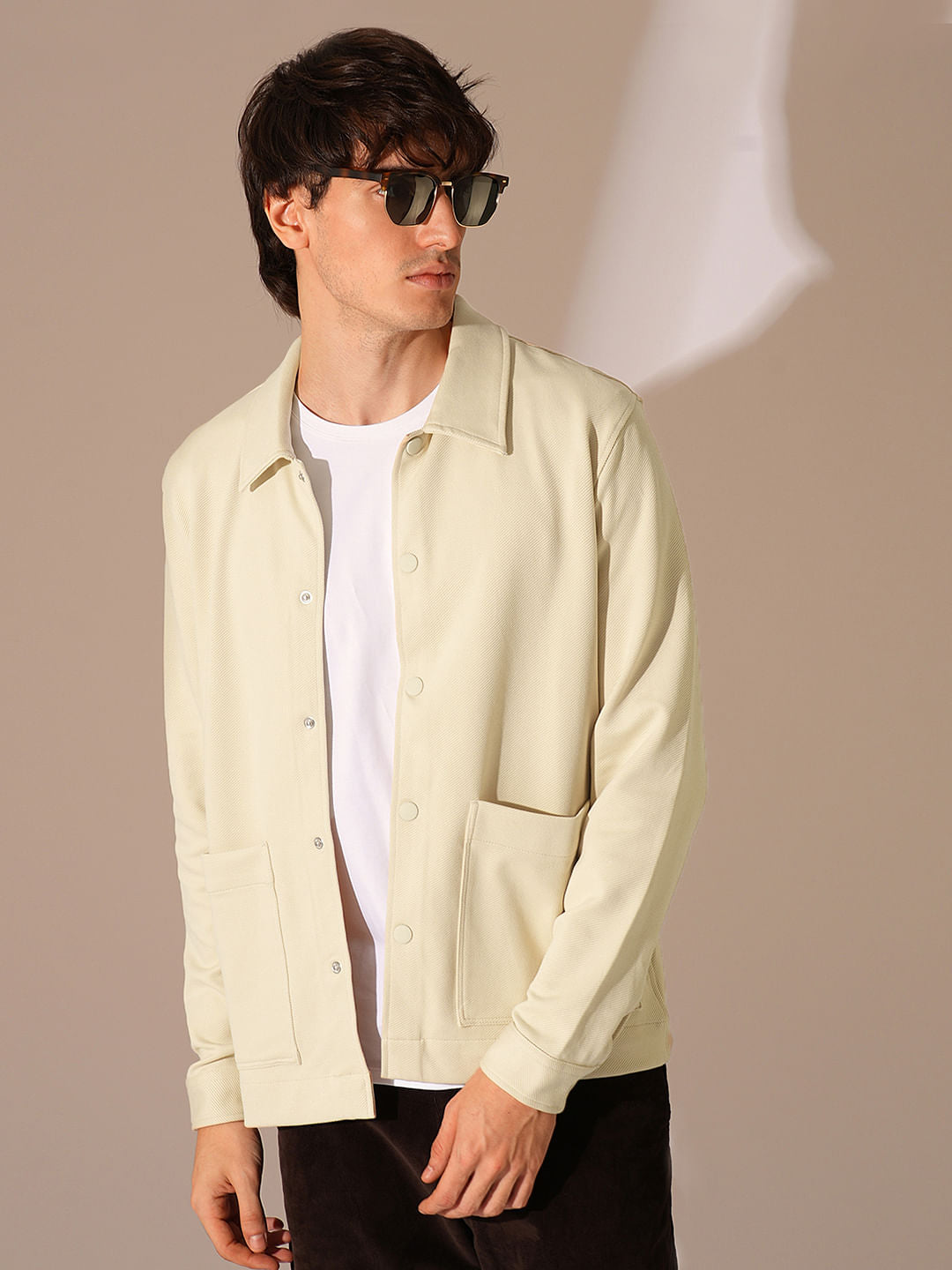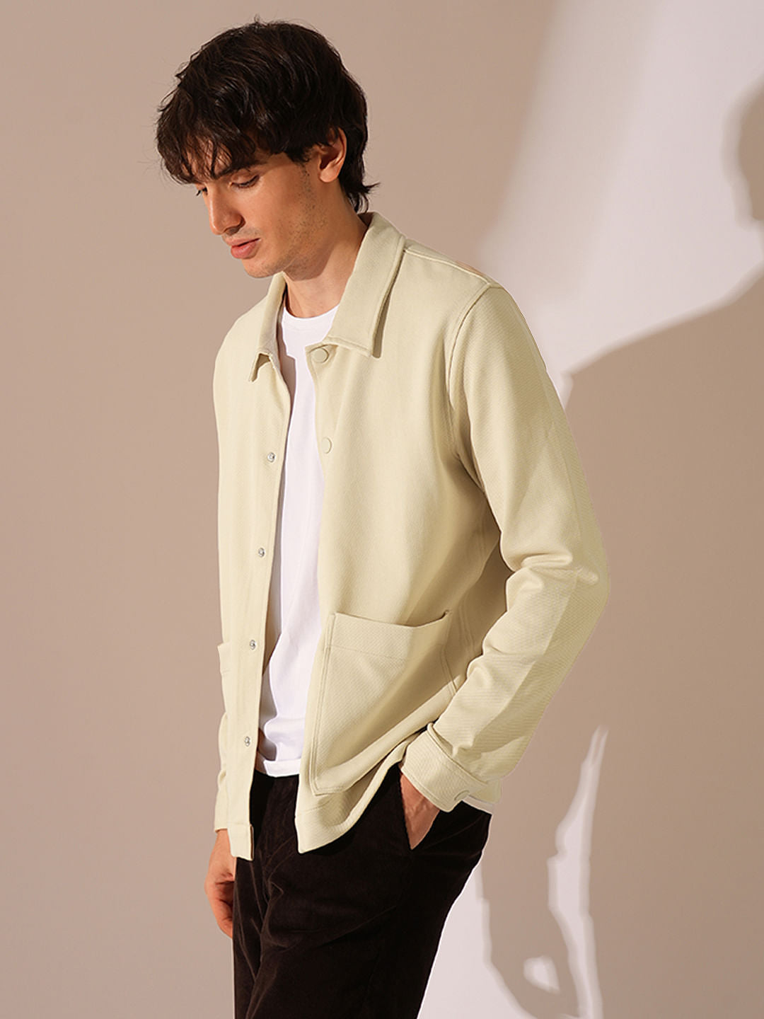 Discover the perfect balance of comfort and style with this men's knitted long-sleeve jersey overshirt. Crafted with a twill structure, it offers a refined look while maintaining a relaxed fit for everyday ease. Made from a premium 340gsm fabric, this overshirt feels substantial yet soft, ensuring both warmth and breathability. The ribbed design adds subtle texture, making it a versatile addition to your wardrobe.