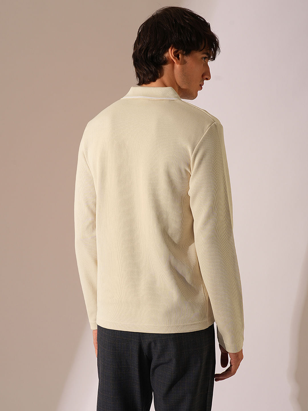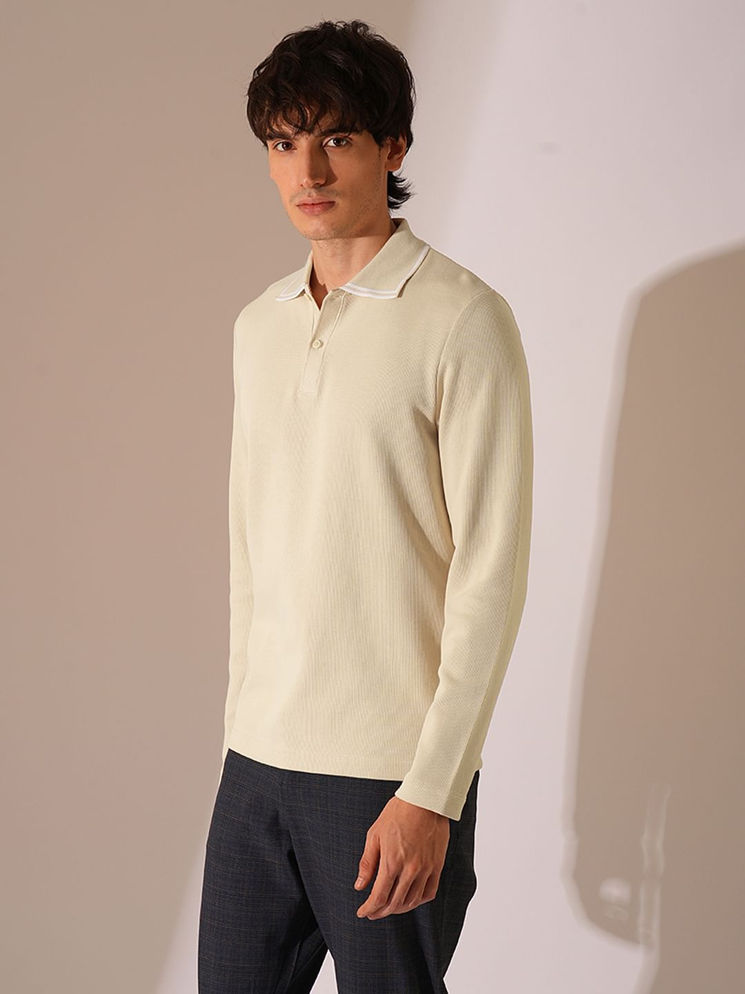 Elevate your wardrobe with our premium men's knitted long sleeve polo. Designed with a refined collar stripe detail, this polo offers a classic yet modern touch.