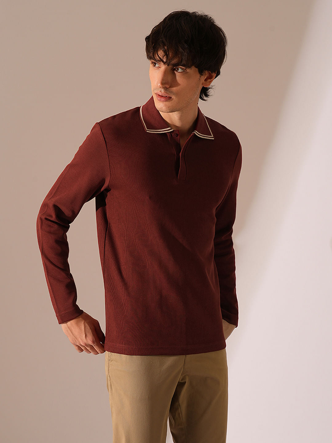 Elevate your wardrobe with our premium men's knitted long sleeve polo. Designed with a refined collar stripe detail, this polo offers a classic yet modern touch.