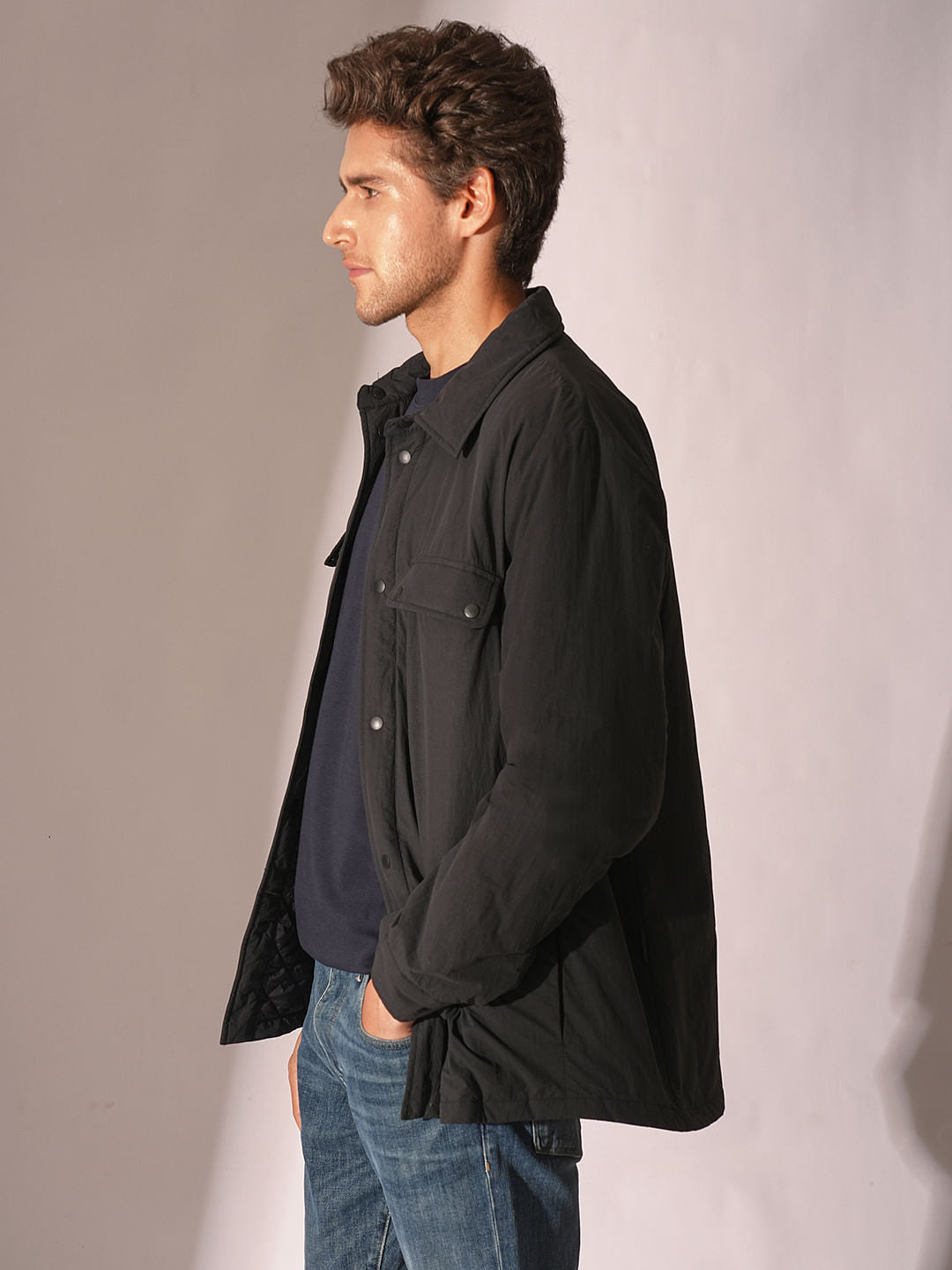 A versatile garment designed to bridge the transition into the new season ahead. - Detail Type : Shacket - Functionality : Water-repellent - Neck : Spread Collar - Cuffs : Press-stud cuffs - Closing : Press stud fastening - Pockets : Side pockets, Chest pockets - Padding : Lightweight, recycled REPREVE® padding made from plastic bottles - Extra details : Quilted detail - Wash/Finish : ECO Water-repellent treatment gives you a guarantee that fluorine substances have not been used to make the product water-repellent.