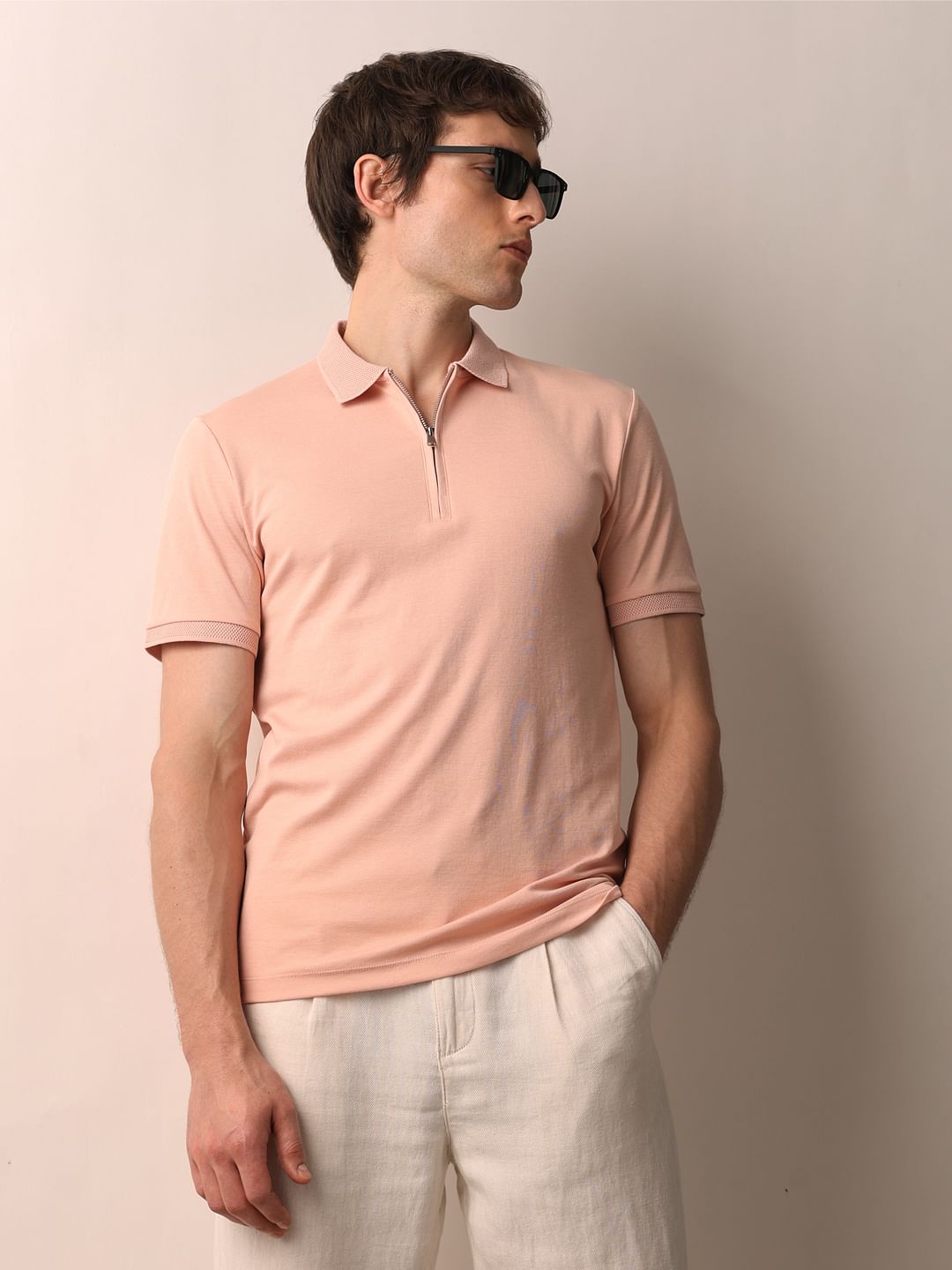 Introducing our distinguished Polo Shirt with Half Zip – an embodiment of sophistication. The interlock fabric, slightly thicker and smoother, ensures both comfort and refined elegance. Tailored to perfection in a slim fit, the ribbed collar and cuffs add a touch of distinction.