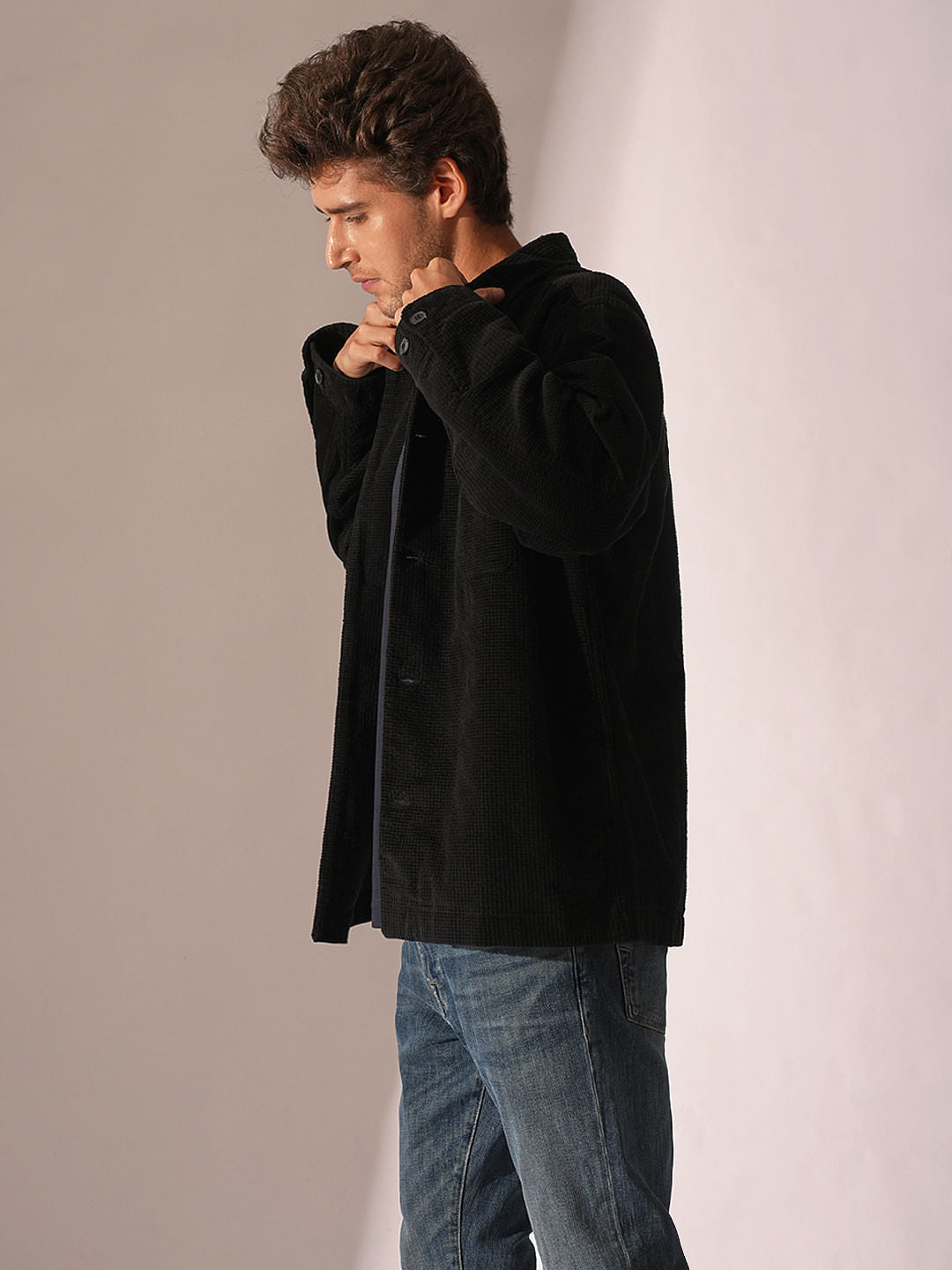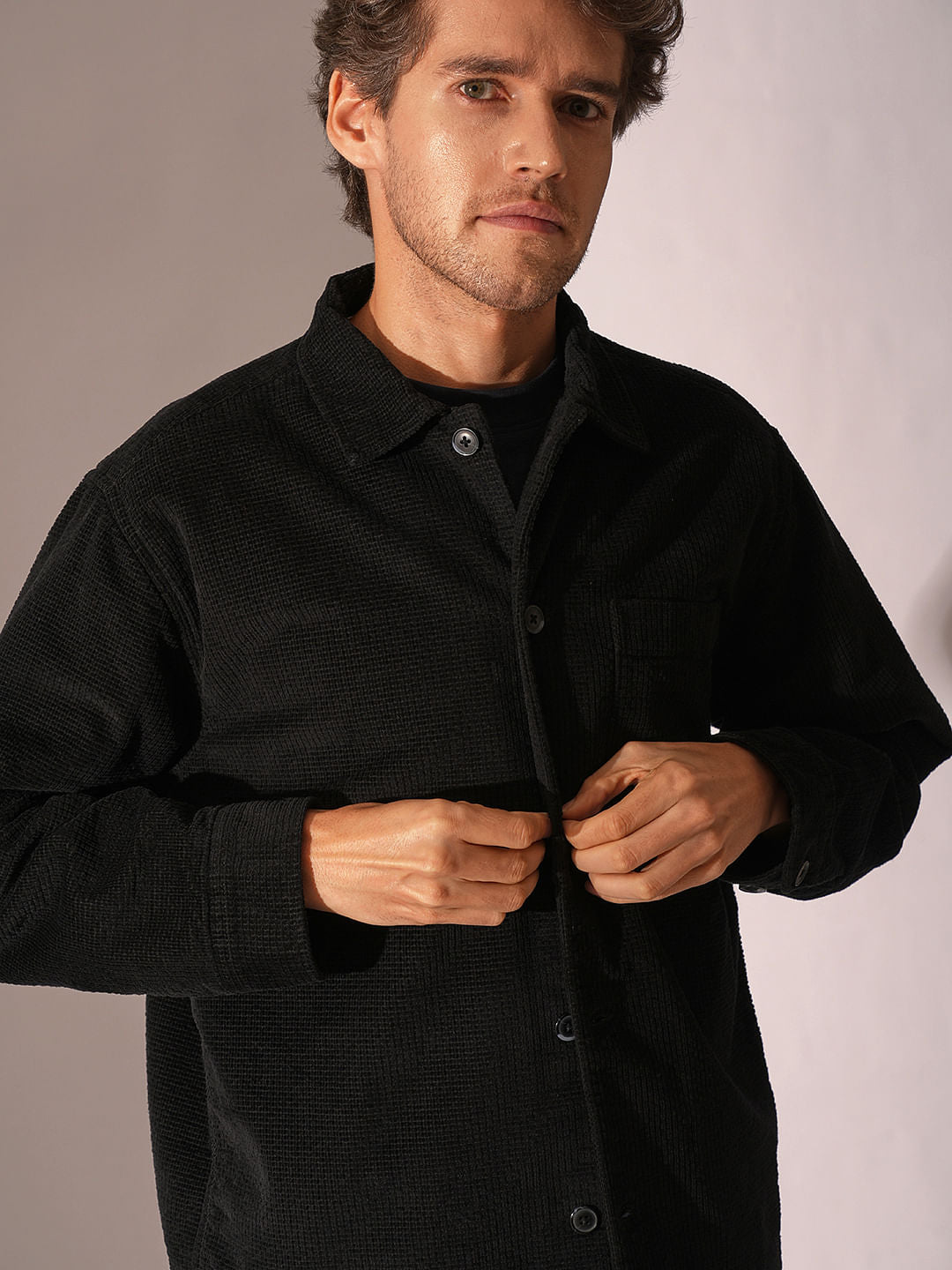 Black Corduroy Padded Overshirt