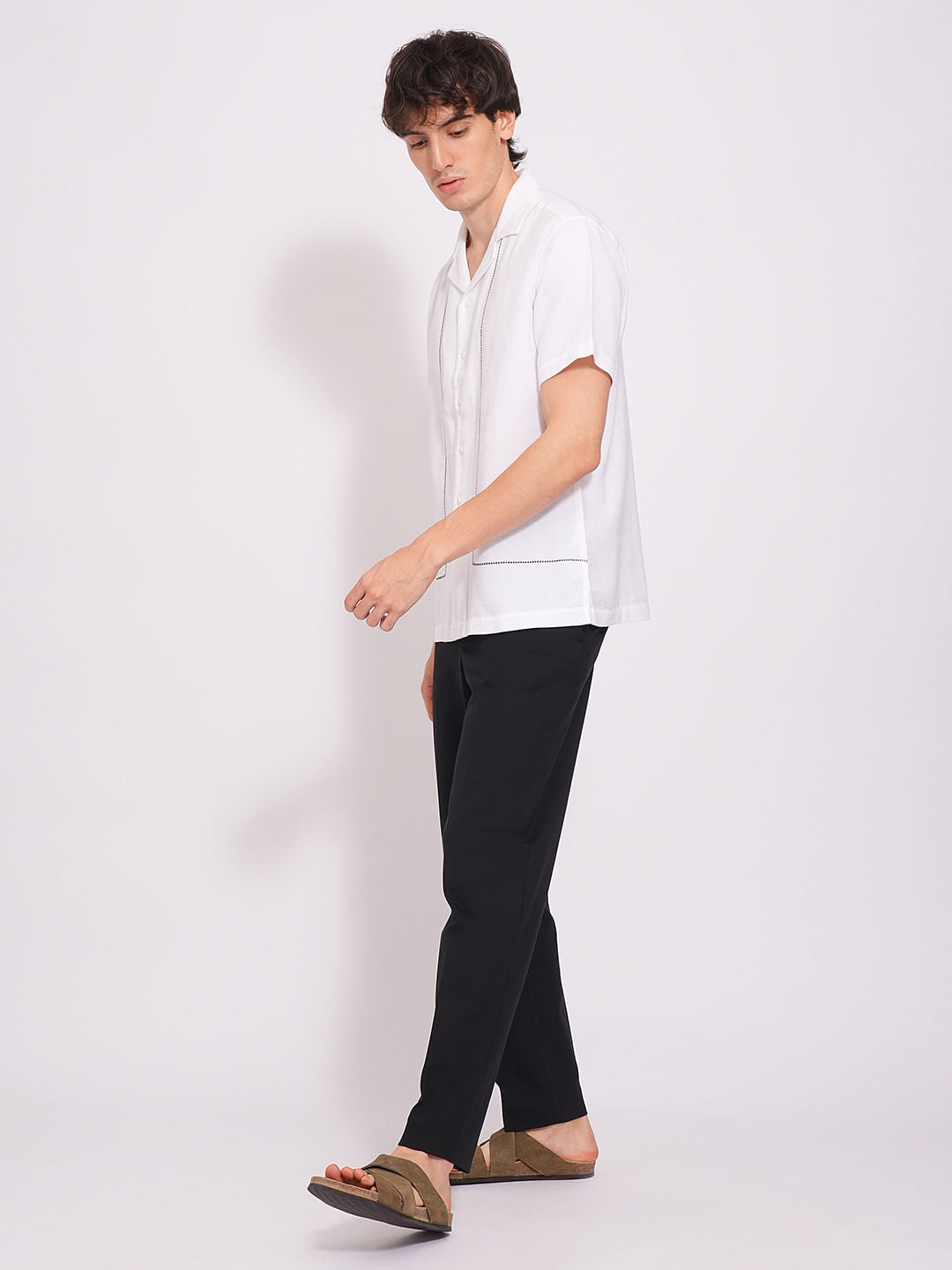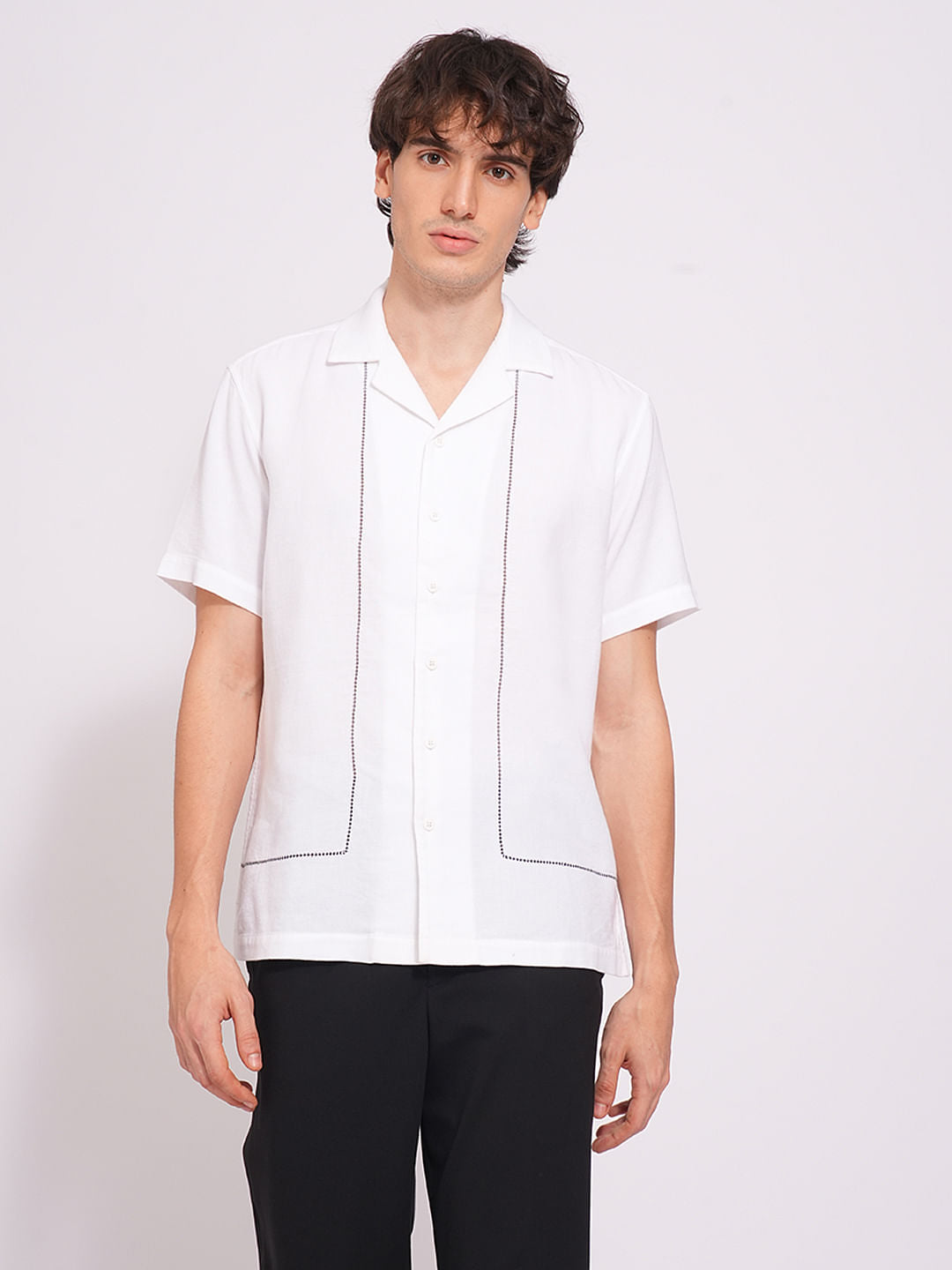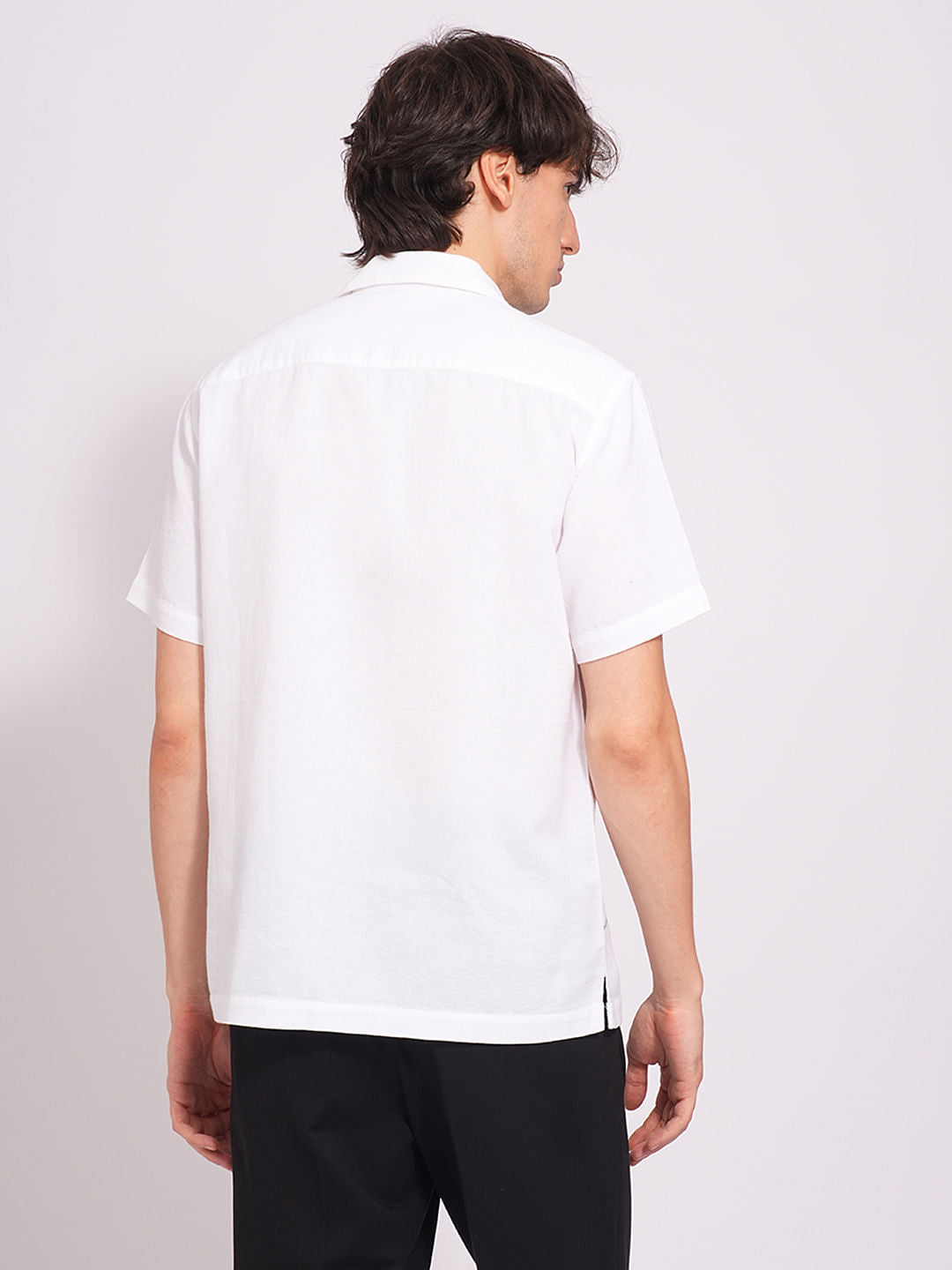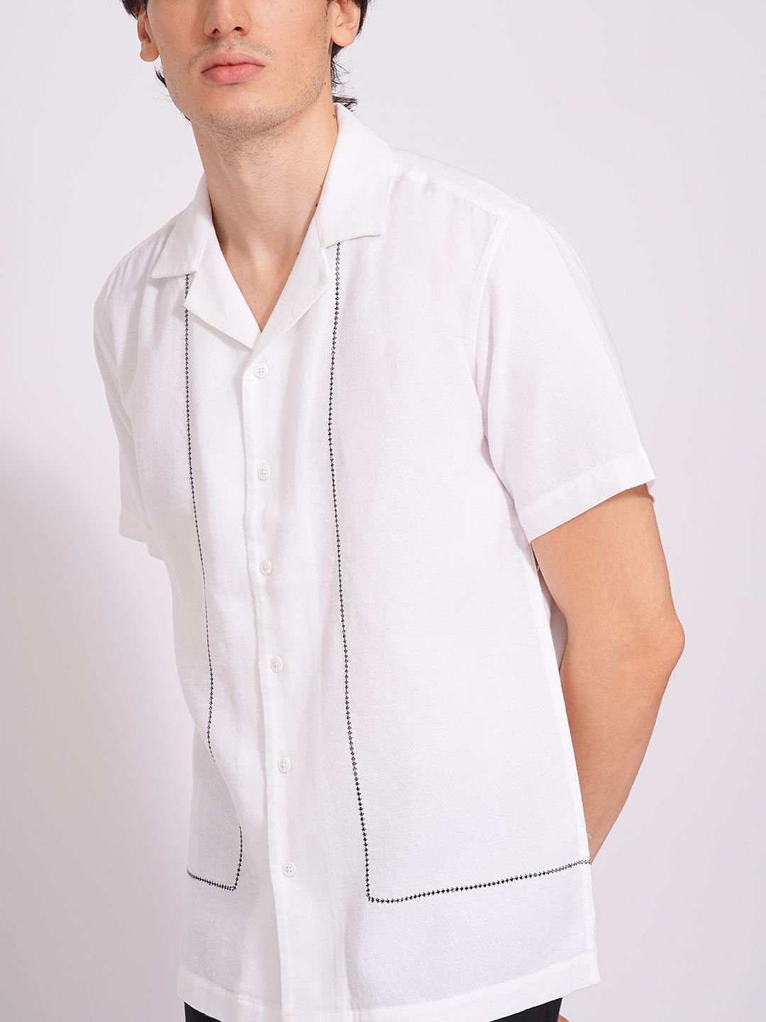 White Cuban Collar Cotton Shirt