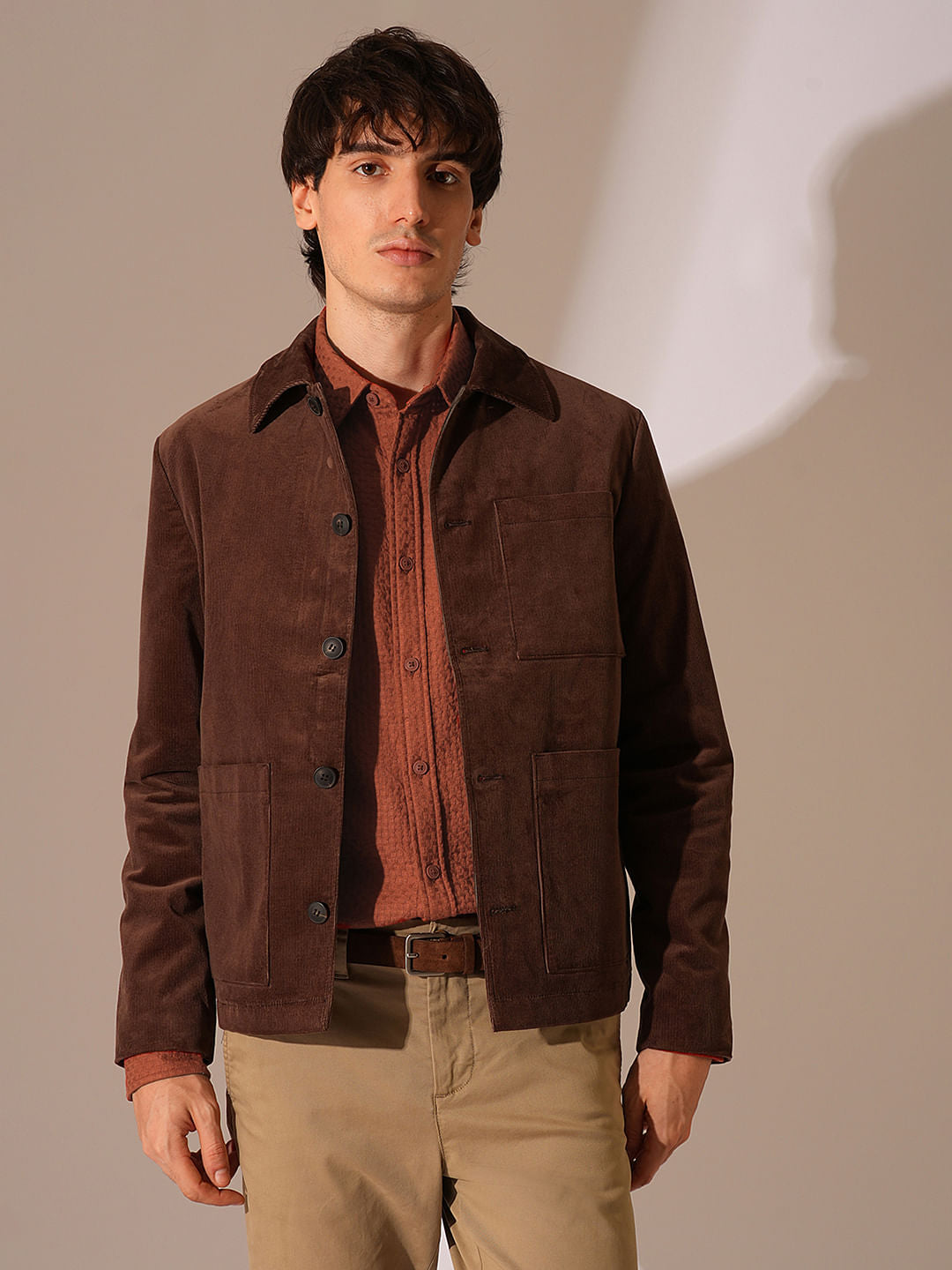 Men's rust coloured textured Cotton Shirt from SELECTED HOMME.