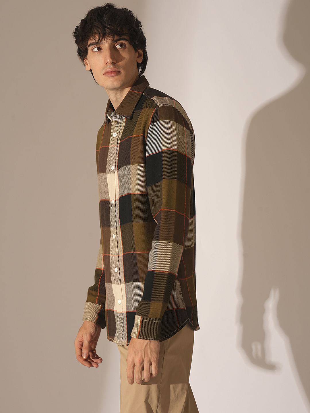 Step out in style with our 100% cotton checkered shirt, perfect for any casual outing. With its soft feel and comfortable regular fit, you’ll look sharp all day thanks to the buttoned cuffs and contrast buttons. The curved hem adds a modern twist, while the chest pockets offer classic detailing. Pair it with your favourite jeans for an effortlessly cool look.
