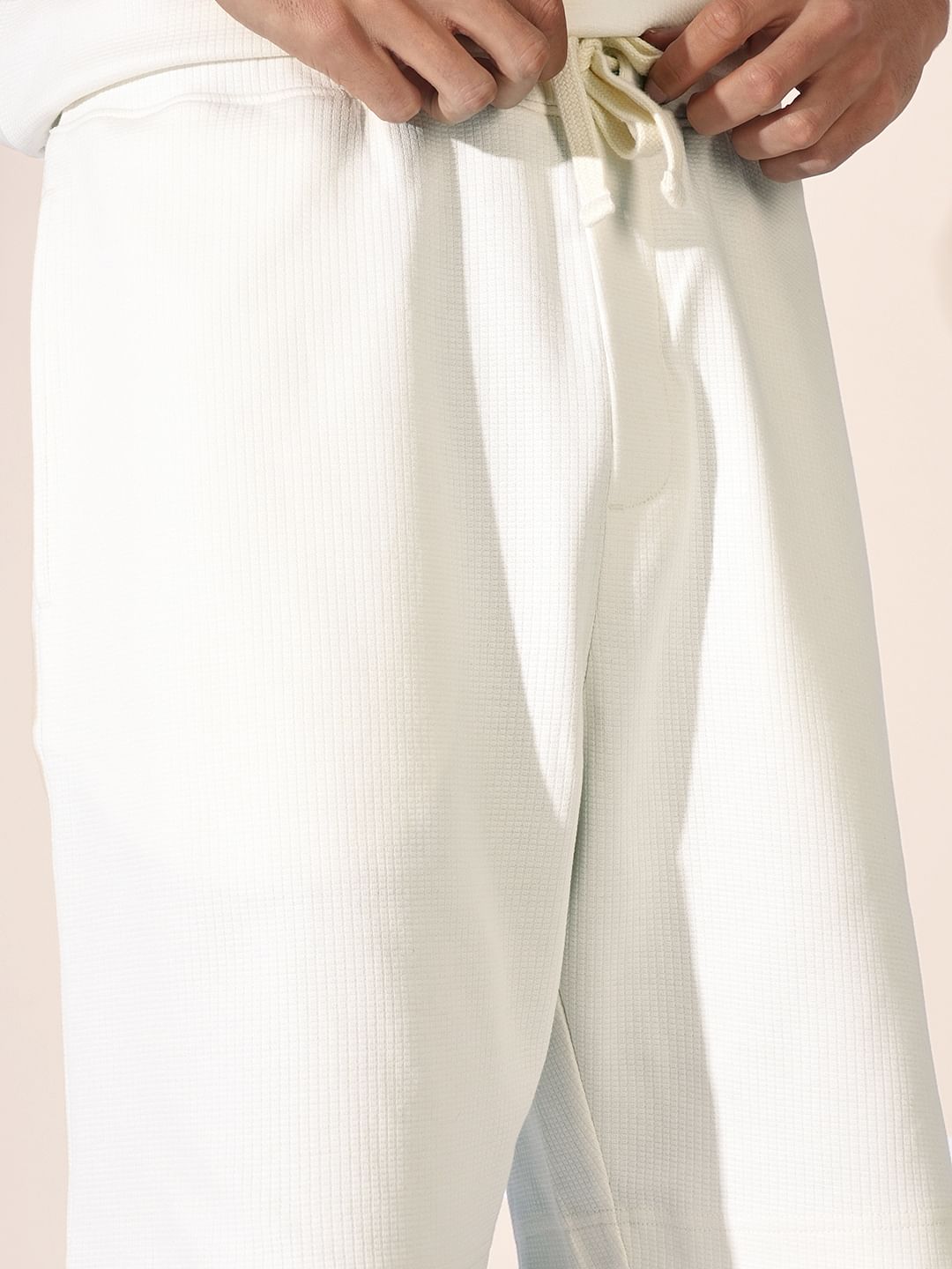 Experience elevated comfort and style with our mid-waist rise trousers, designed for the modern man. Featuring an elasticated waistband with an adjustable drawstring for a customized fit, these trousers blend functionality with sophistication. The faux zipper detail adds a touch of refinement, while the waffled fabric ensures a unique texture and premium feel. With a loose, relaxed fit, this piece is the perfect balance of effortless elegance and everyday versatility.