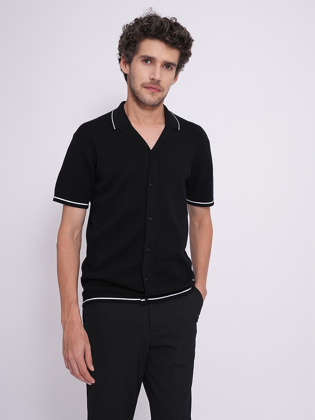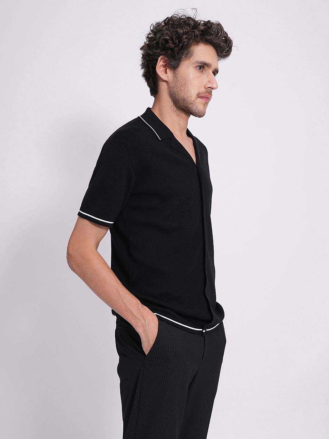 A sleek take on casual dressing, this slim-fit resort collar shirt is a wardrobe staple. Designed with a button-down front and a sharp silhouette, it’s perfect for effortless style—whether layered or worn solo.