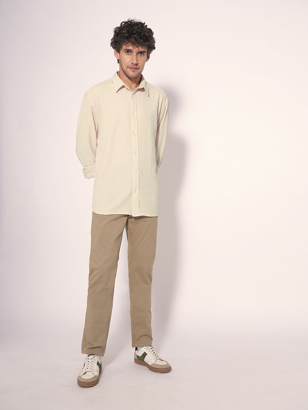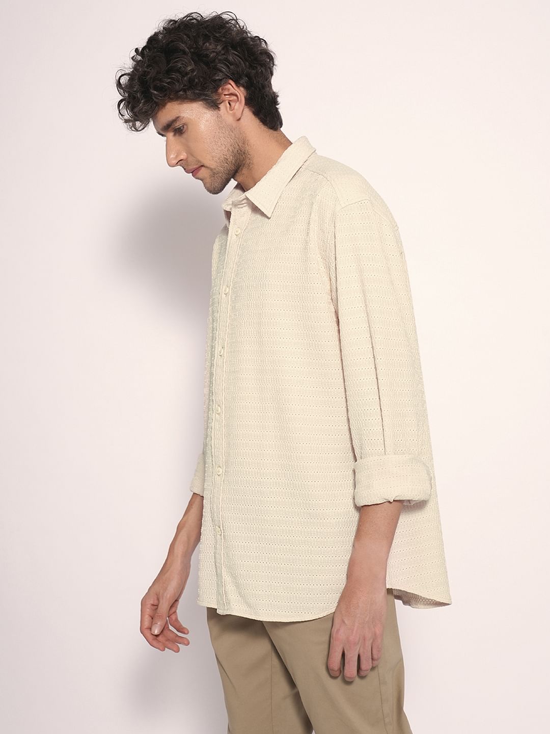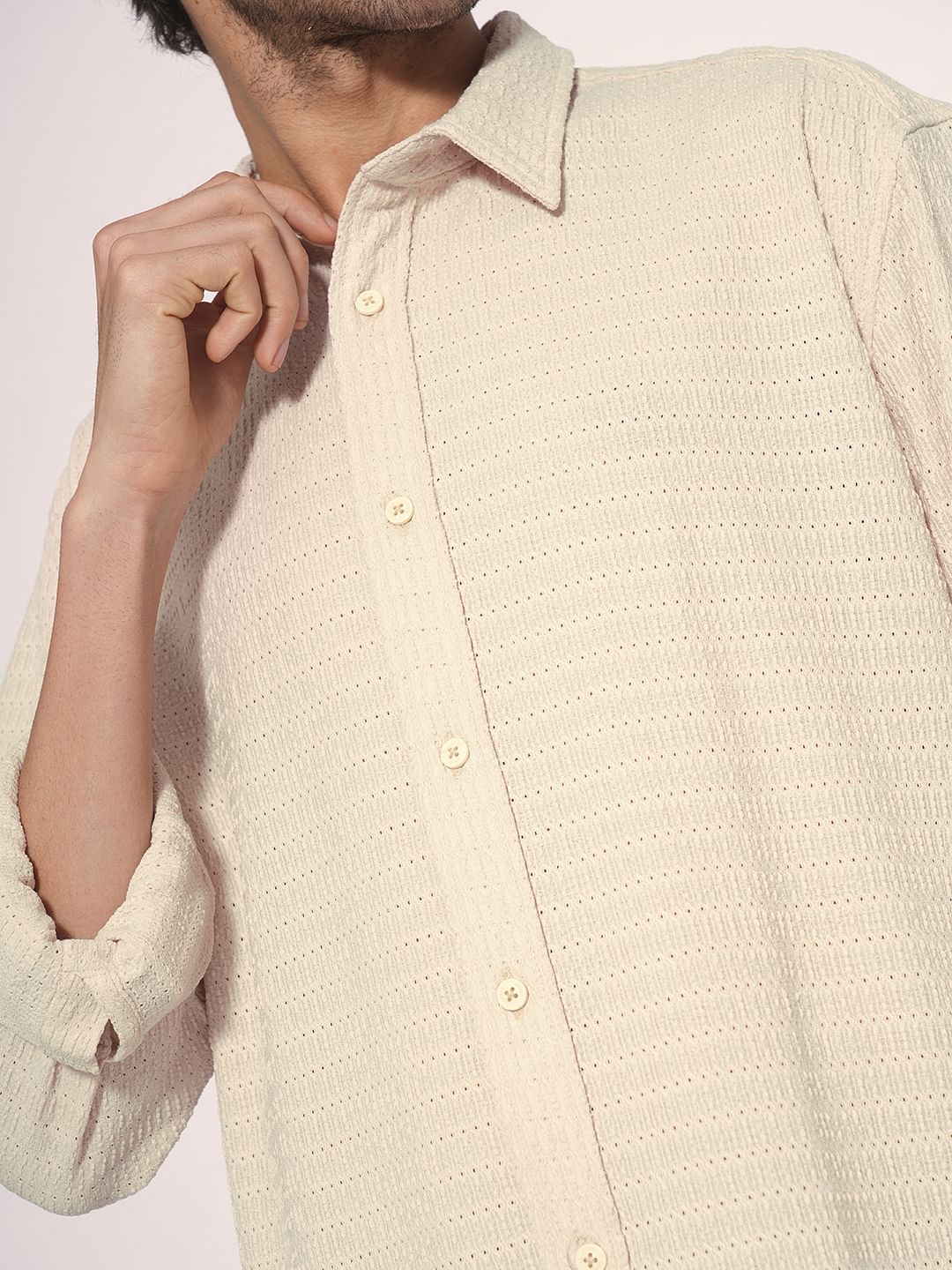 Ecru Textured Cotton Shirt