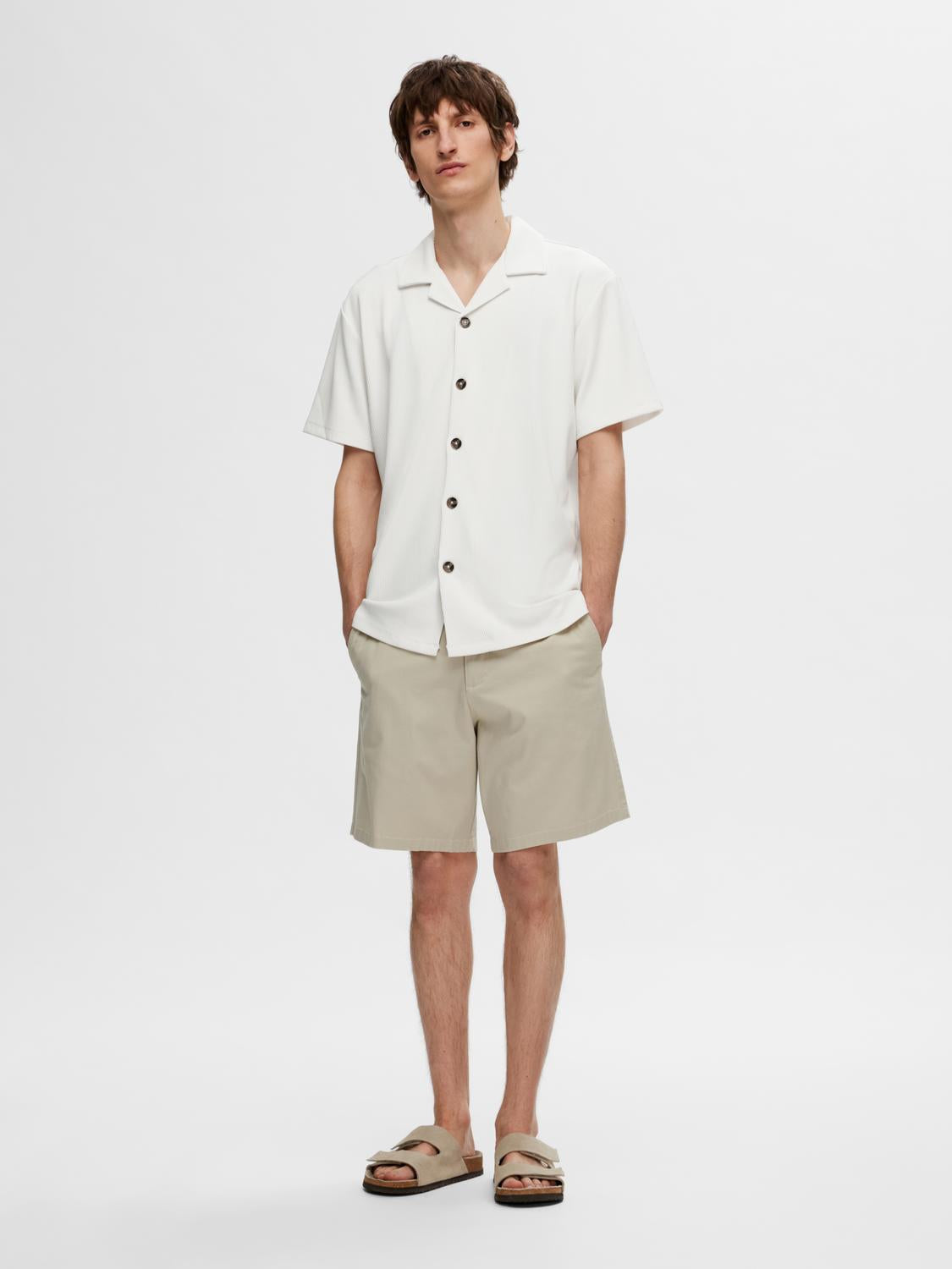 Bring the resort vibes to your doorstep this season with a sophisticated yet comfortable shirt. It has a spread collar and a button-up front, as well as short sleeves. It comes in a ribbed quality that looks and feels luxurious and is even made from recycled materials. For an outfit that screams ‘summer’, style it with our matching shorts. Complete your outfit with a baseball cap and a pair of leather sandals. MADE WITH RECYCLED POLYESTER This product is made with recycled polyester. Recycled polyester saves natural resources and reduces the amount of waste.