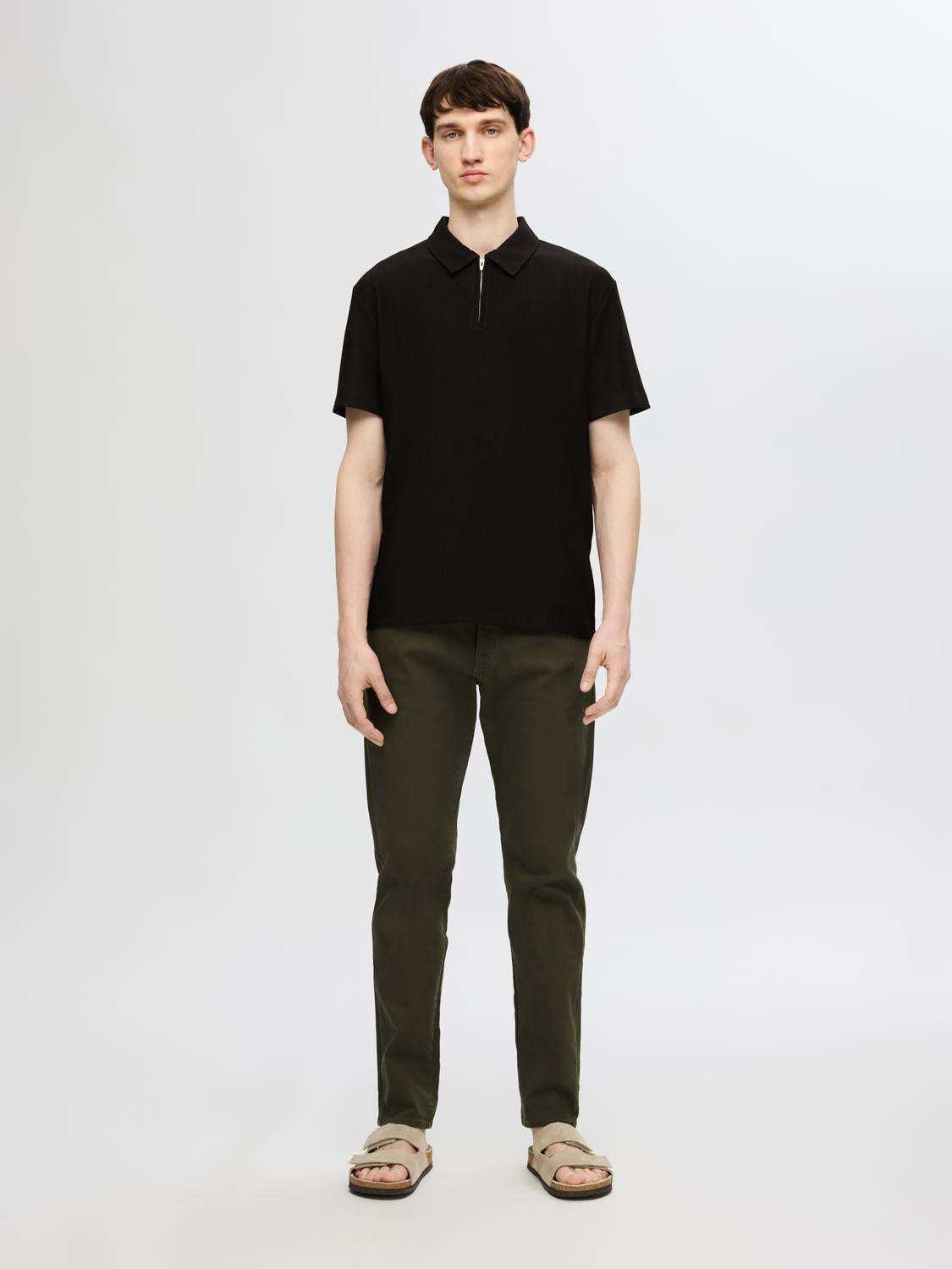 A modern take on the classic polo, this piece features a clean quarter zip and comes in soft, ribbed fabric. Designed for everyday ease with a regular fit and short sleeves — ideal for smart-casual dressing. MADE WITH RECYCLED POLYESTER The main material in this product contains a minimum of 50% recycled polyester. Recycled polyester saves natural resources and reduces the amount of waste.