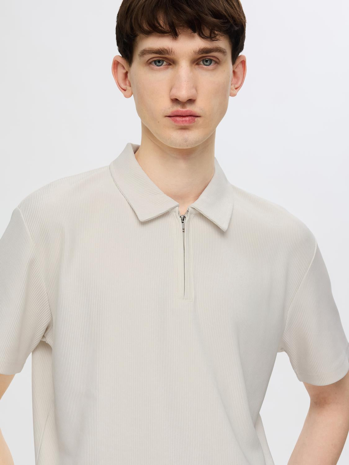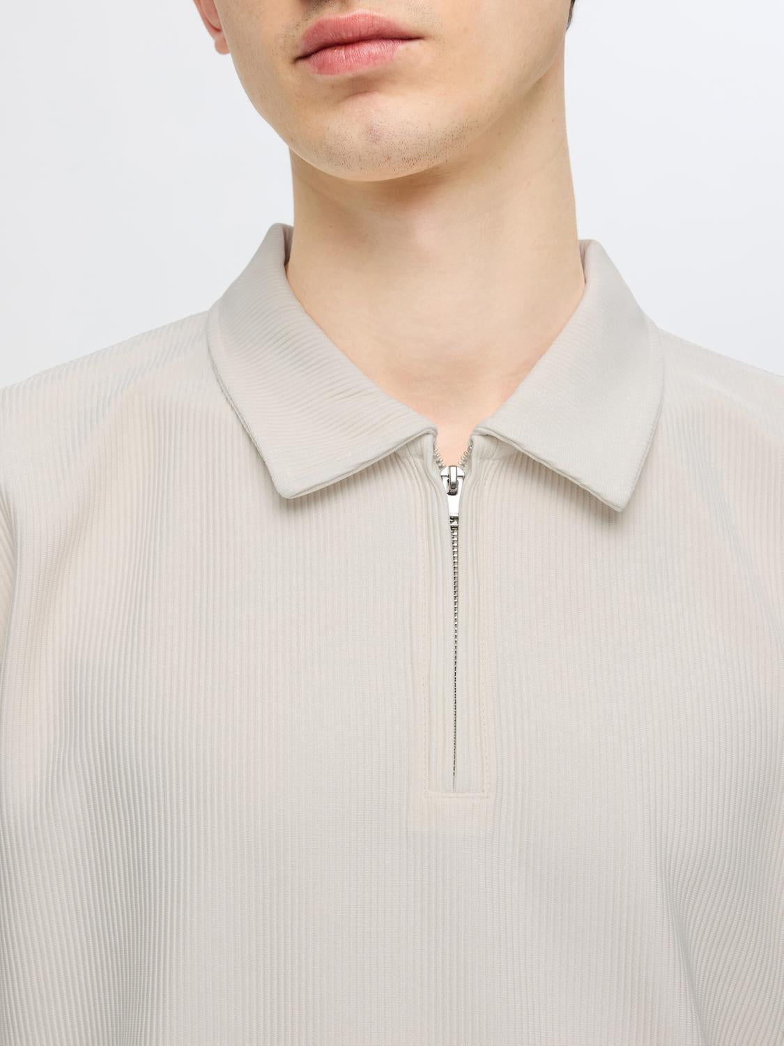 A modern take on the classic polo, this piece features a clean quarter zip and comes in soft, ribbed fabric. Designed for everyday ease with a regular fit and short sleeves — ideal for smart-casual dressing. MADE WITH RECYCLED POLYESTER The main material in this product contains a minimum of 50% recycled polyester. Recycled polyester saves natural resources and reduces the amount of waste.