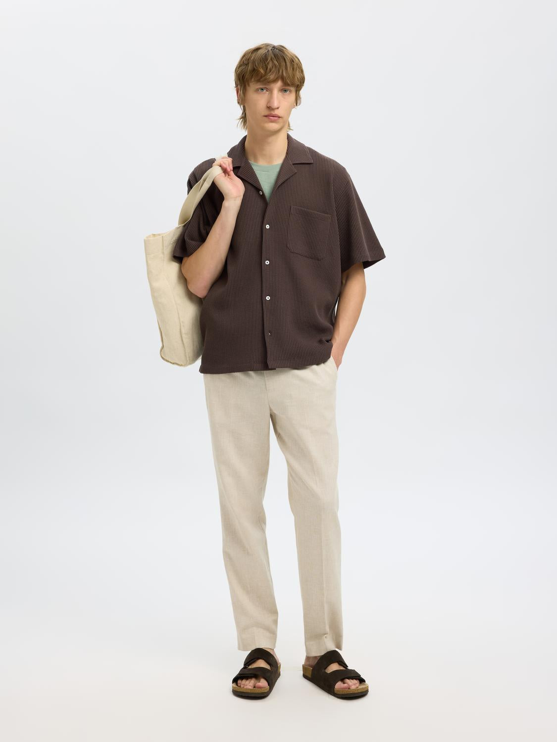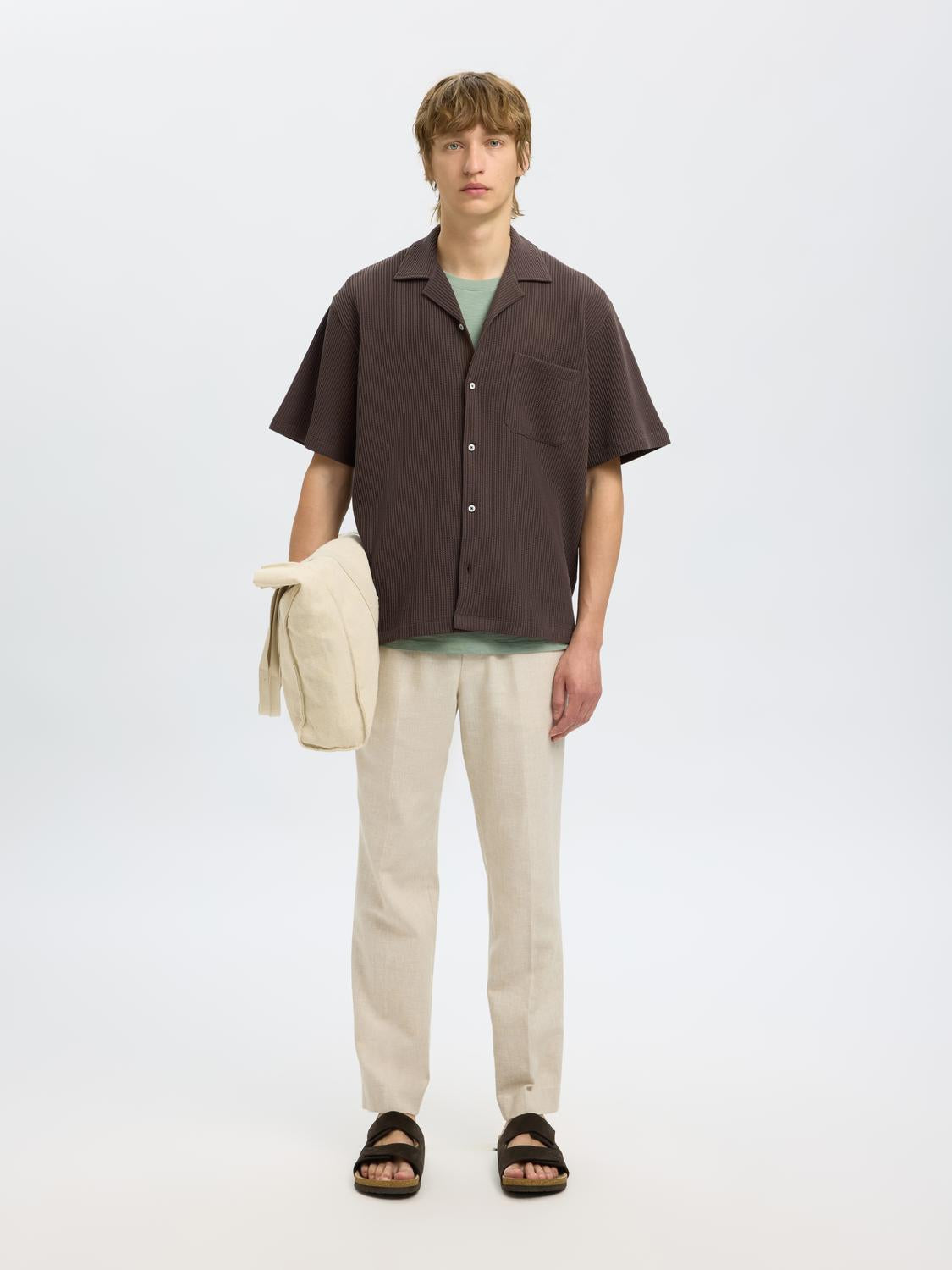 Laid-back and relaxed, that’s how we’d describe this short-sleeved shirt. It comes in a unique waffle texture that gives it a nice thickness and weight and makes it stand out from your other basics. Wear it with straight-leg denim and trainers to play up its oh-so-casual look.