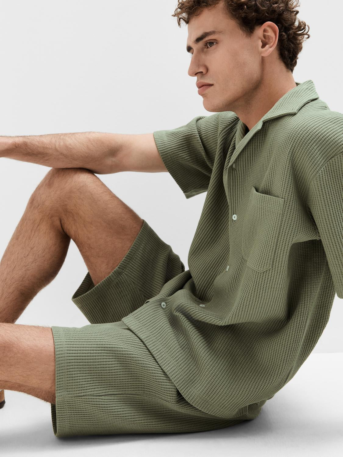 Lay back with these laid-back waffled shorts. They come in a super comfortable loose fit, making them the perfect loungewear, but can be styled for outdoor wear. Pair them with a T-shirt, a cotton overshirt, and some sleek trainers.
