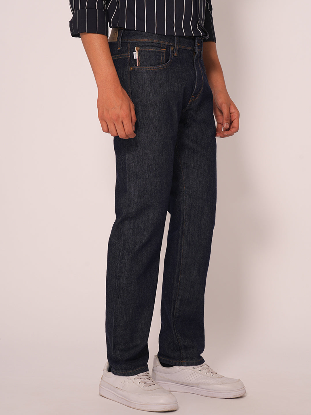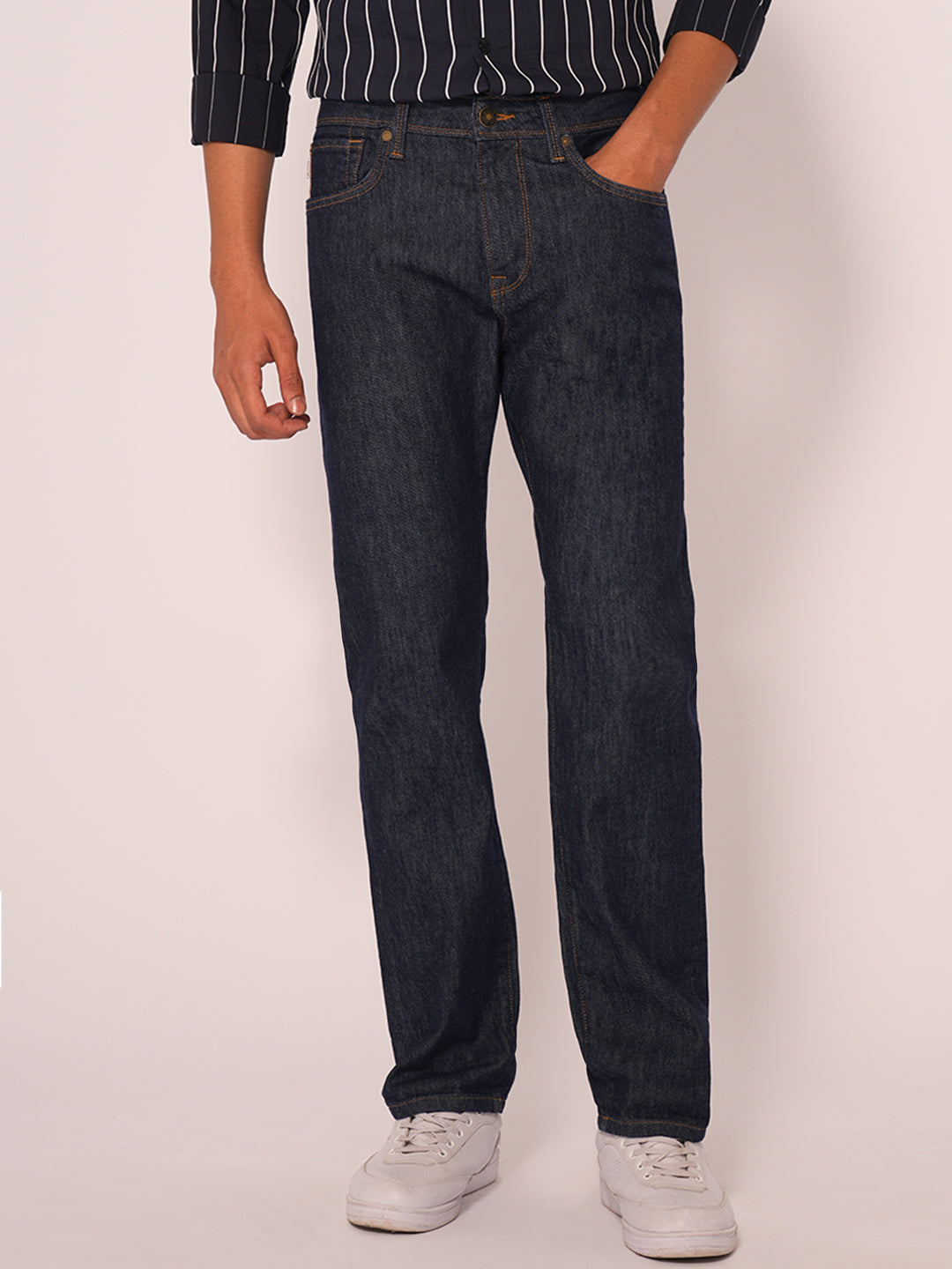 Crafted in a classic straight fit, these dark blue jeans feature a zip and button fastening, with front and back pockets for everyday ease. A timeless staple in regular length.